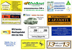 | Yritys ja yhteydet | Tarrat | Tarratekstit | Kyltit ja opasteet |